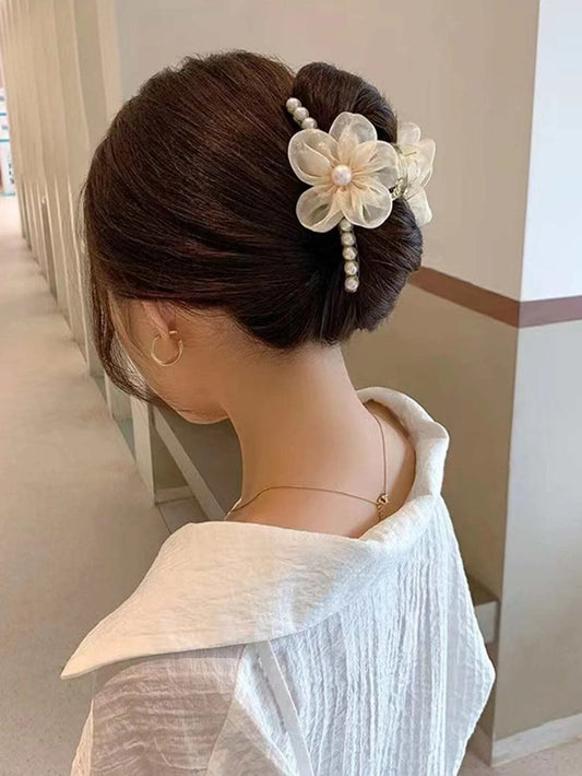 2 Stk Hårspænder med Blomster & Glansfulde Perler