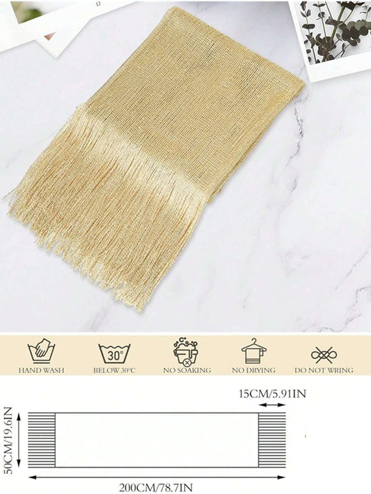 Guld Glitter Tørklæde - Sjal med Frynser & Spænde