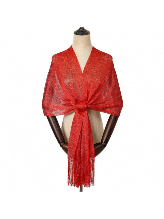 Rød Glitter Tørklæde - Sjal med Frynser & Spænde