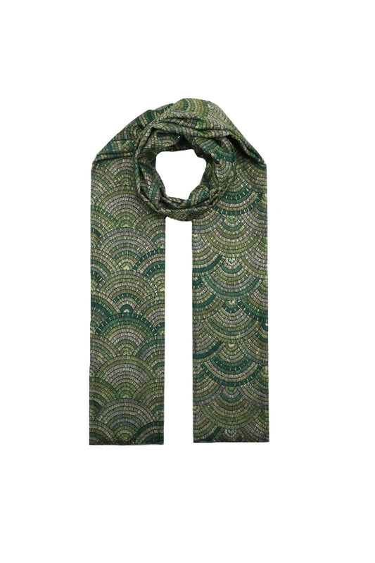 Blødt Tørklæde i Grønne Nuancer & Guld Glans