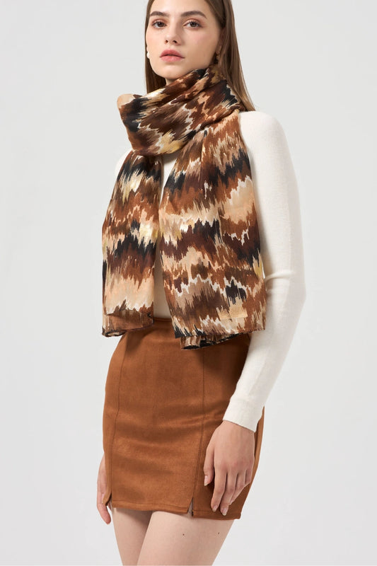 Stort Mønstret Tørklæde i Brune Nuancer & Guld Glans