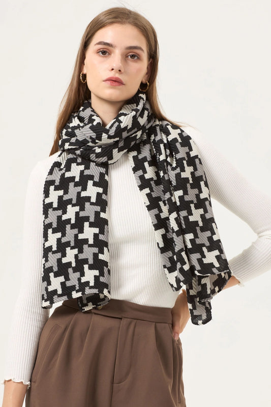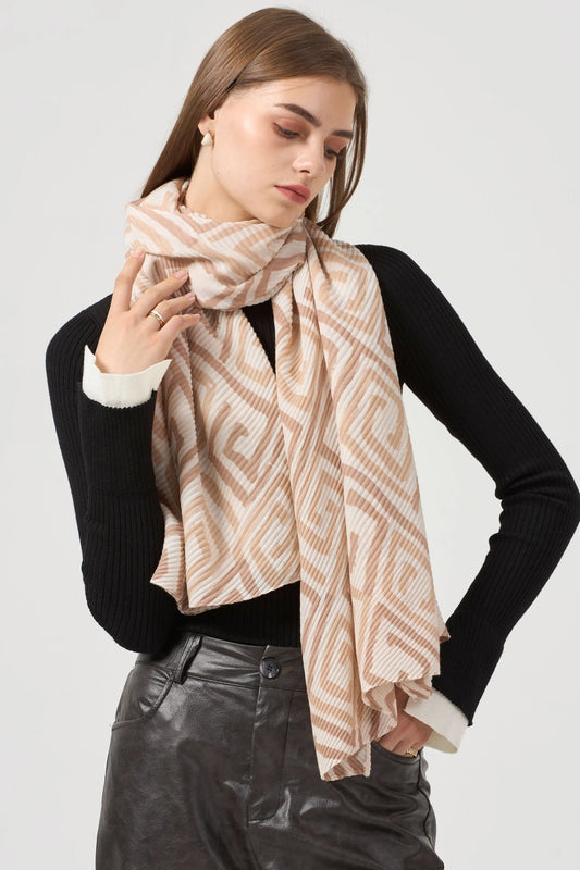 Tørklæde i Beige & Creme - Flot Geometrisk Mønster