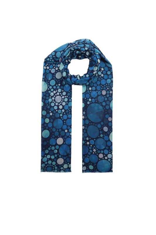 Stort Tørklæde i Blå Nuancer & Cirkel Design