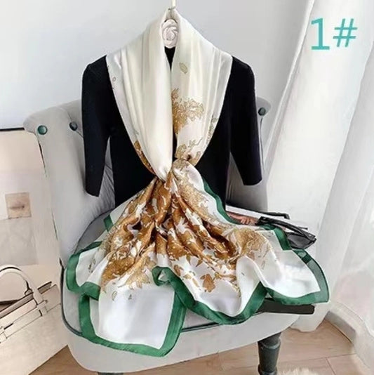 Stort Satin Tørklæde - Blomsterprint i Fine Farver