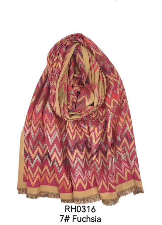 Stort Tørklæde - Vævet Mønster i Flotte Farver
