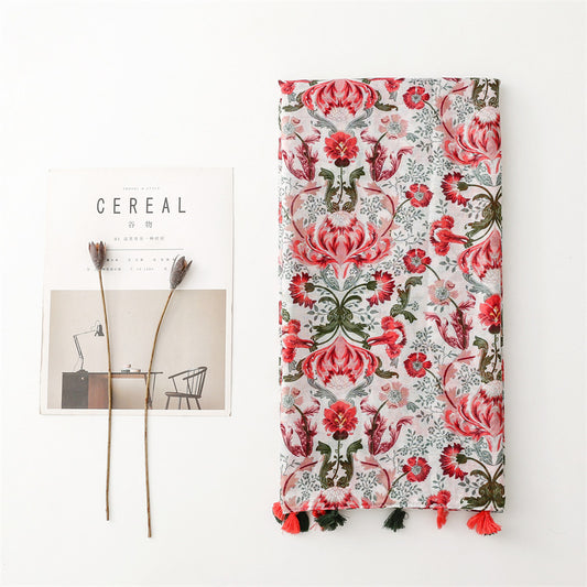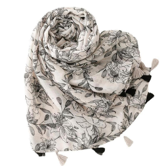 Stort Tørklæde med Bomuld - Skønt Blomsterprint & Kvaster