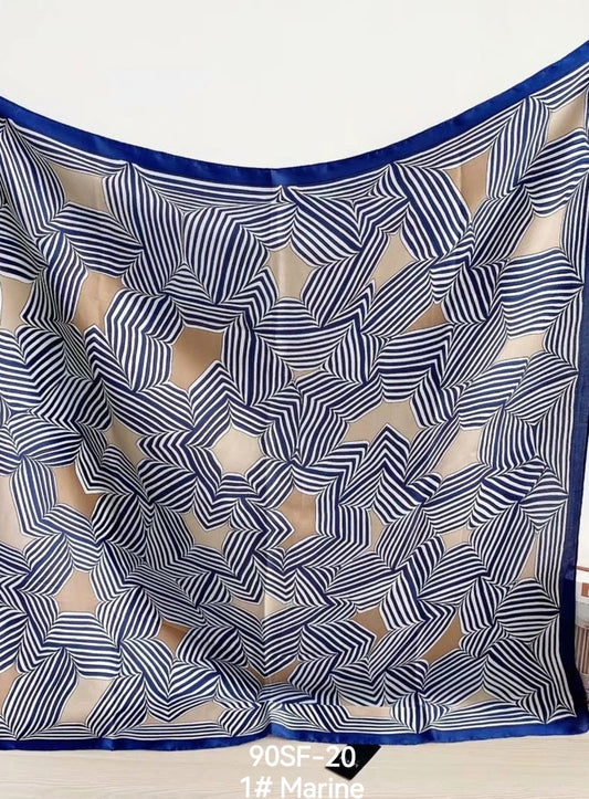 Elegant Tørklæde med Mønsterprint i Blå, Hvid & Gylden