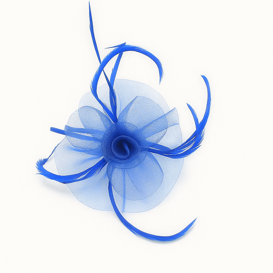 Blue Fascinator with Flower and Feather