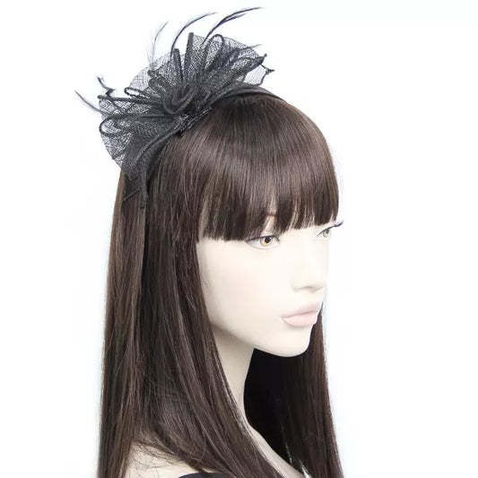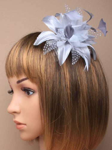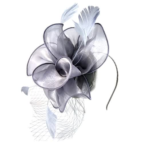 Silver-Gray Hatinator Hairband w. Satin Flower, Net & Feather