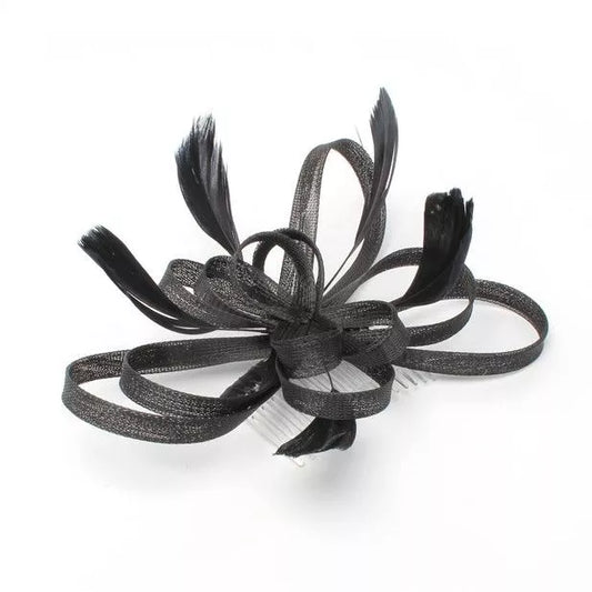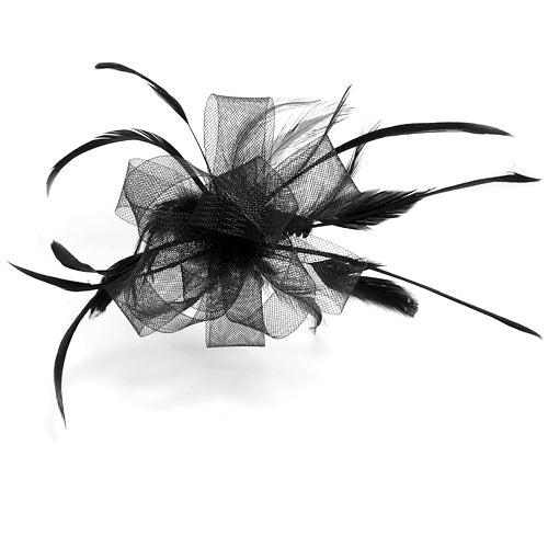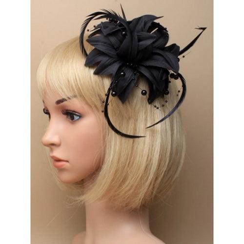 Black Hair Flower - Fascinator with Feathers & Pearls