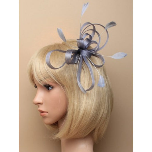Silver-Grey Fascinator with Beautiful Net Bow and Feathers