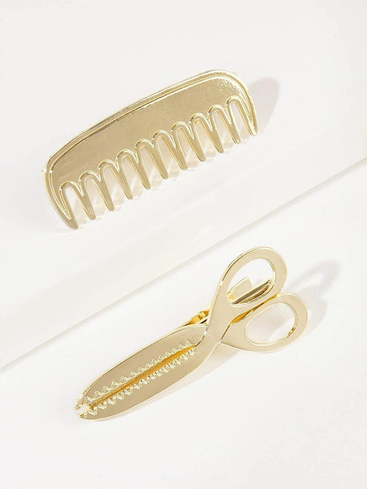 Golden Hair Clips with Comb & Scissors