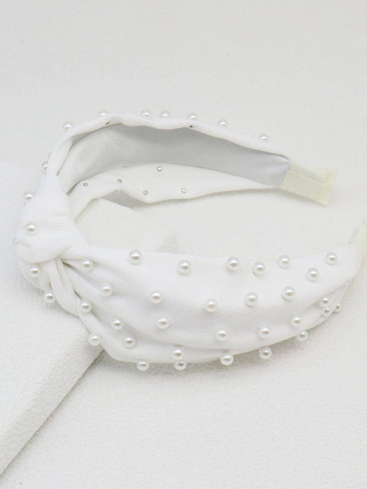 Padded Hairband with Pearls - in Champagne, Silver & White