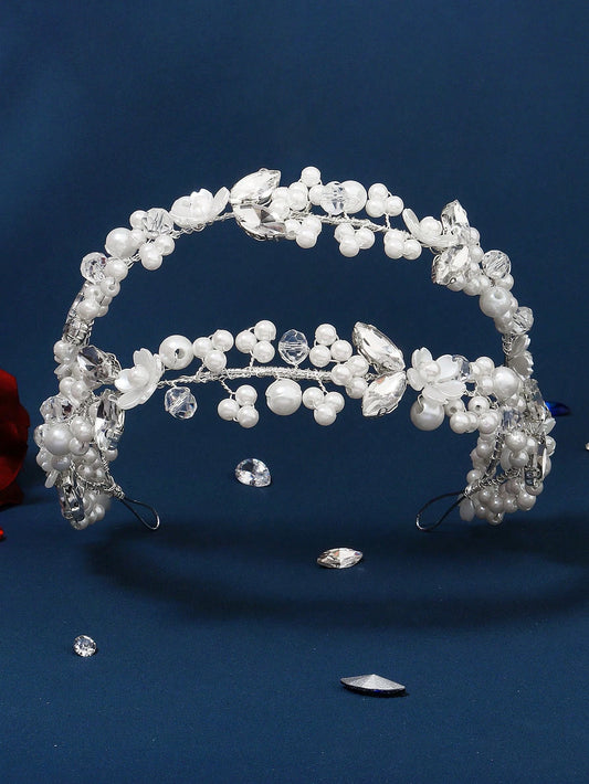 Silver-Crystal Hair Ornament with Flowers / Diadem