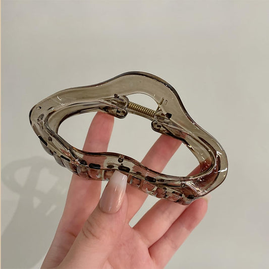 Large Hair Clip in Wavy Design - in Clear Light Brown Color