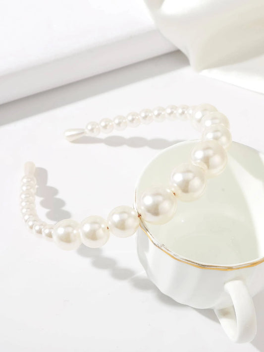 Hairband with Pearl Decoration - in Blue, White & Silver