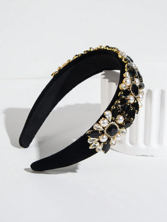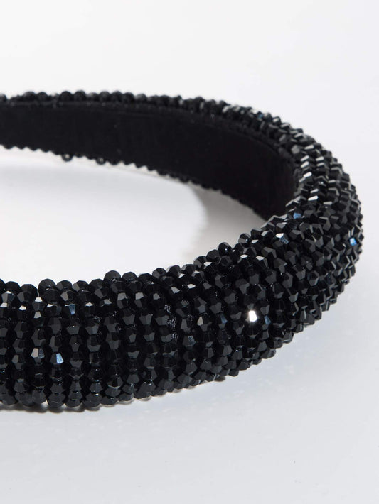 Beautiful Padded Headband with Beaded Embroidery - in Black