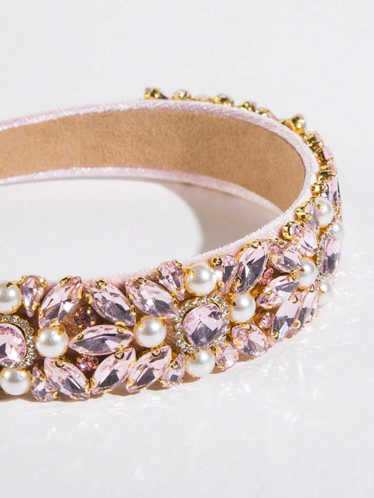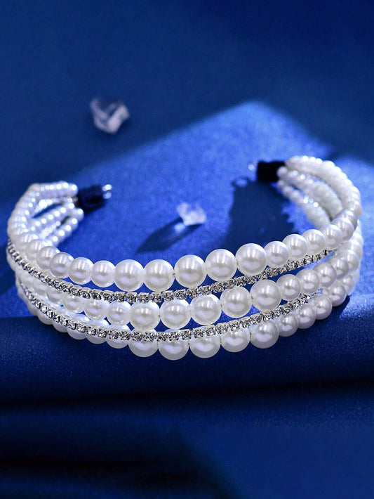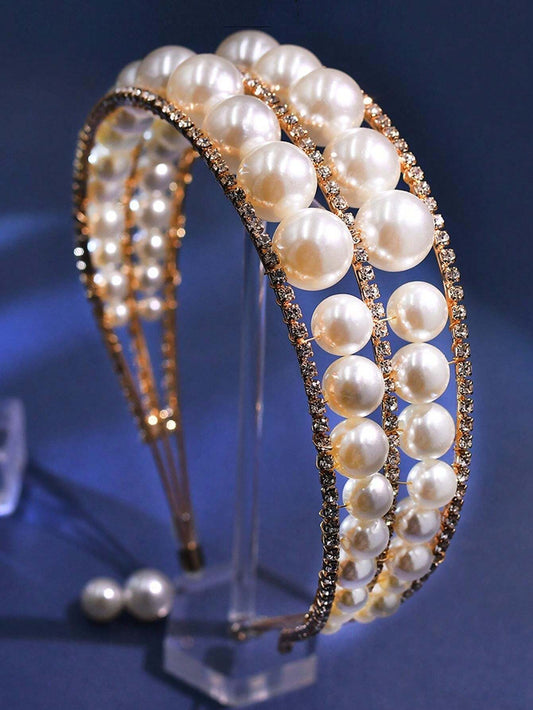 5-Strand Hair Hoop with White Pearls & Crystal Beads
