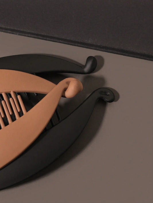 2 Hair Clips (Banana / Mega Fish) in Black & Brown