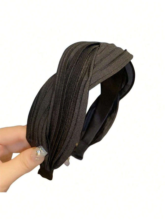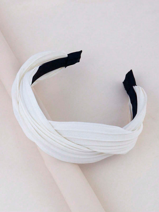 Creamy White Hairband in Pleated Satin & Twisted Design