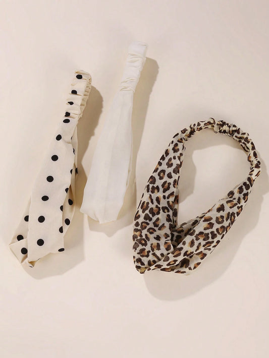 3 Pieces Braided Hairbands - with Animal Print & Dots