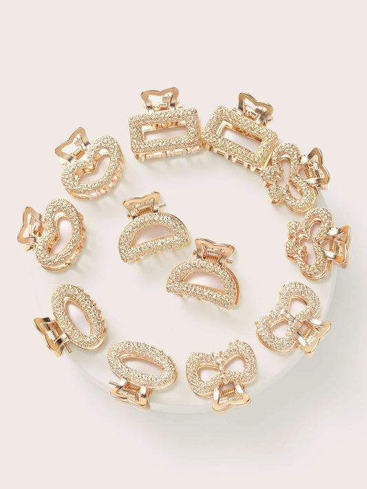 12 Small Golden Hair Clips - in 6 Fine Designs