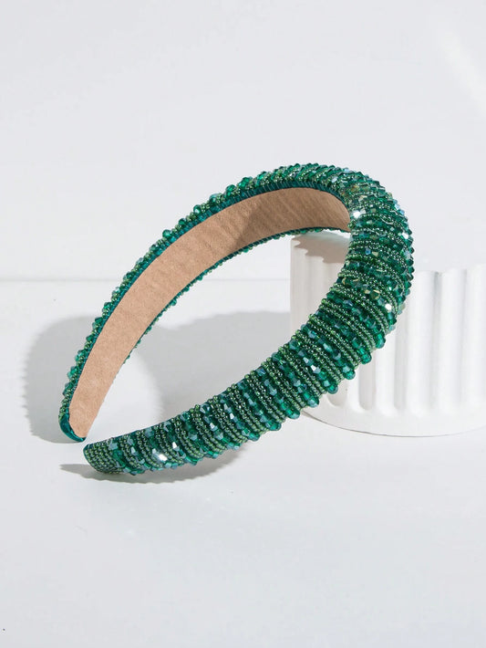 Beautiful Padded Hair Hoop with Beaded Embroidery - in Green