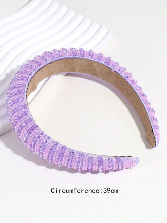 Beautiful Padded Headband with Beaded Embroidery - in Purple
