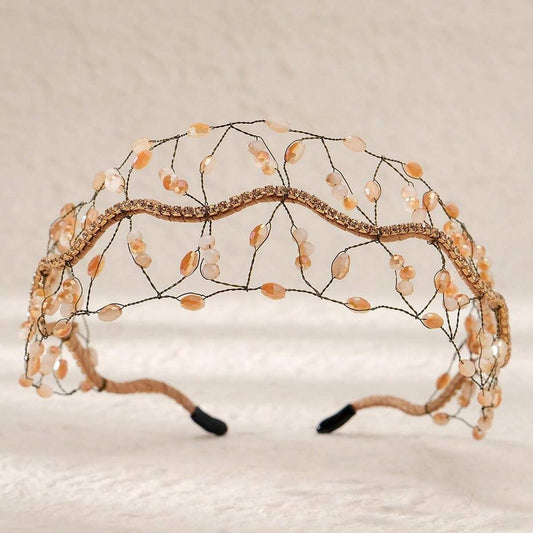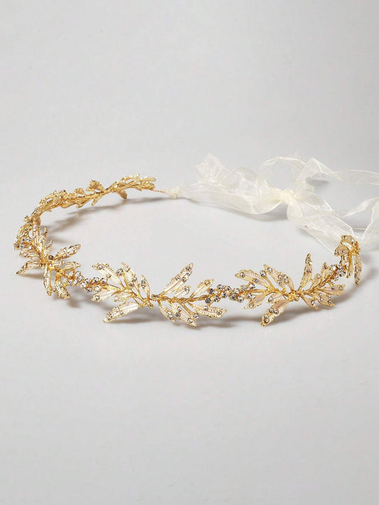 Golden Hair Ornament - Crystal Headband (Tiara) with Leaves