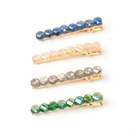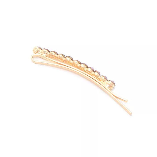 Golden Hair Clips with Round Crystal Beads - in Purple