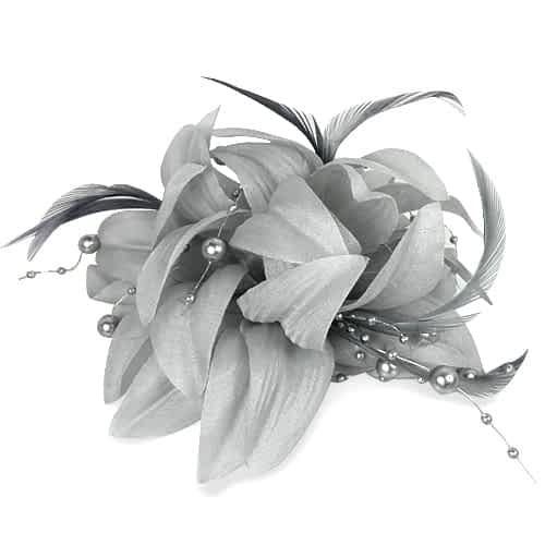 Grey Hair Flower - Fascinator with Feathers & Pearls