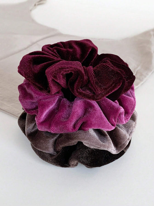 4 Large Velour Hair Ties - in Brown & Pink Colors