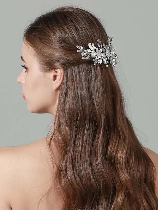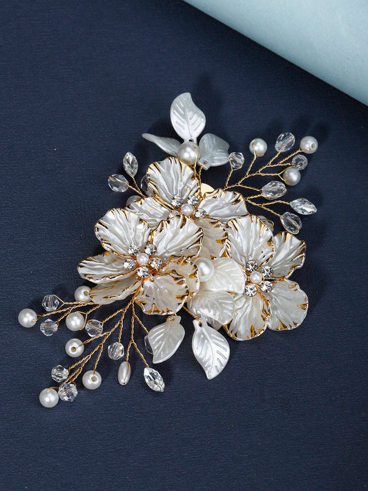 Large Hair Ornament with Flowers, Leaves & Pearls