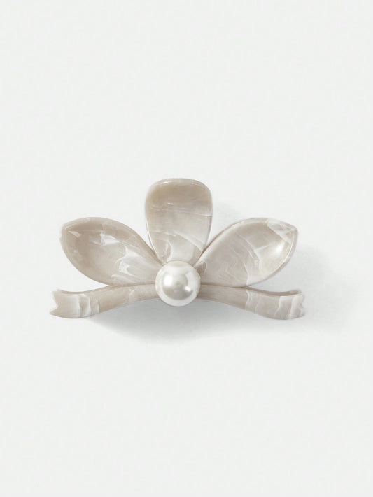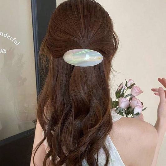 Large Oval Patent Hair Clip - in Beige with Pattern