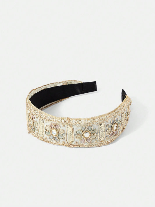 Golden Hair Ornament - Headband with Flowers & Pearls
