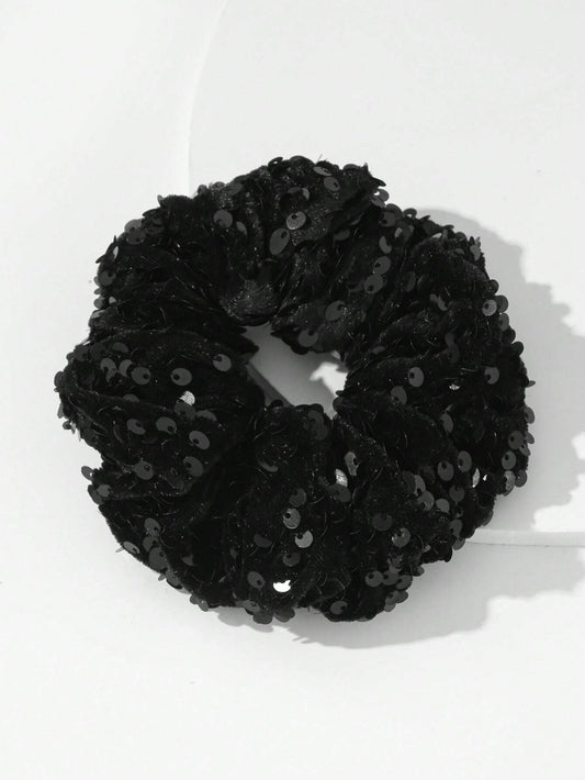 Extra Large Velour Scrunchie - in Black with Shiny Sequins