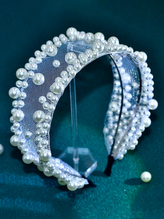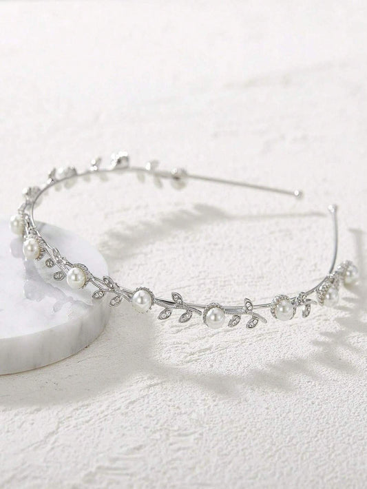 Tiara - Silver Hairband with Pearl Flowers & Leaves