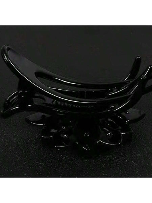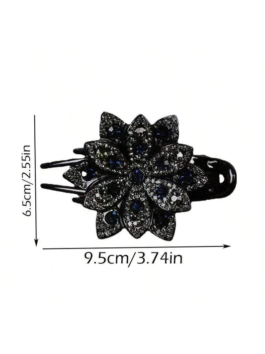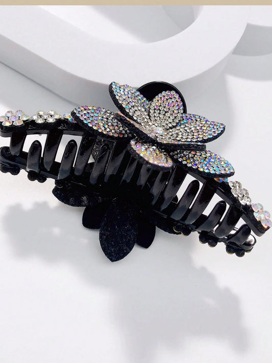 Large Black Hair Clip in Floral Design with Clear Pearls