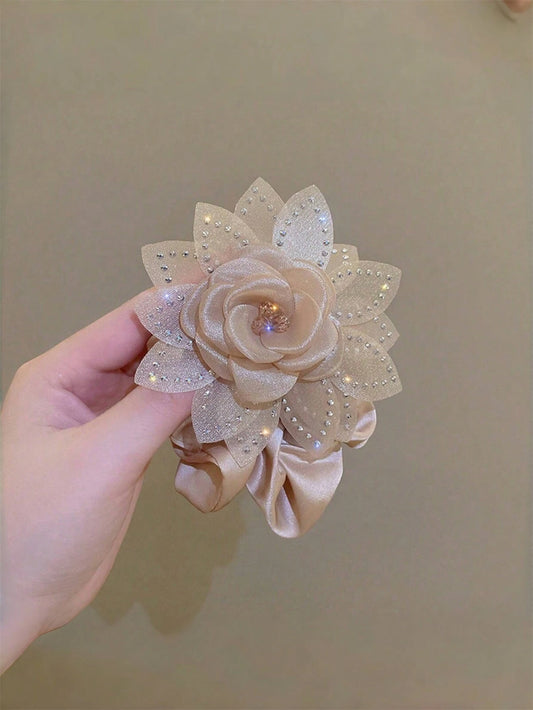 Scrunchie Hair Tie with Golden Flower & Pearls