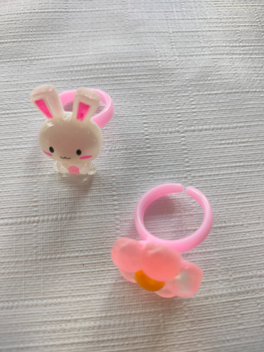 2 Children's Finger Rings - with Rabbit & Flower