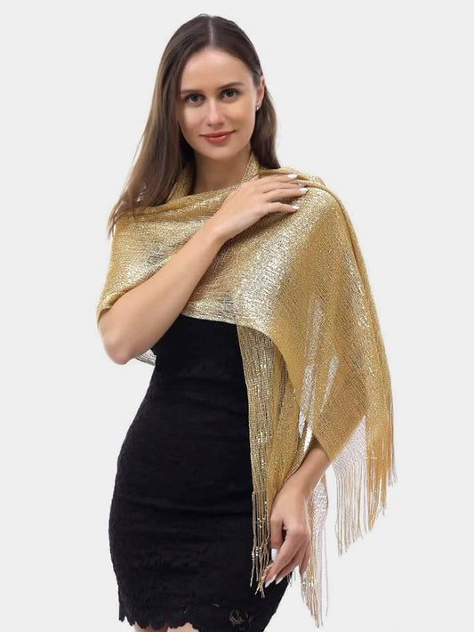 Gold Glitter Scarf - Shawl with Fringes & Buckle