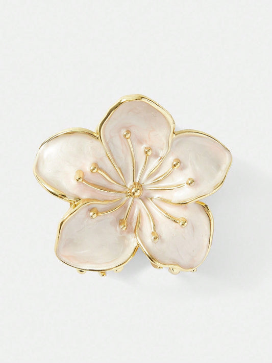 Golden Metal Hair Clip with White Mother of Pearl Flower