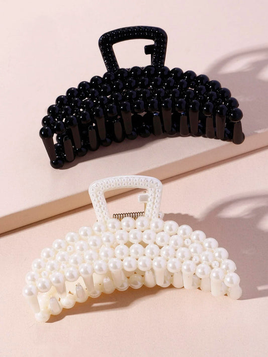 2 Pieces Hair Clips with Pearls - in Black & White