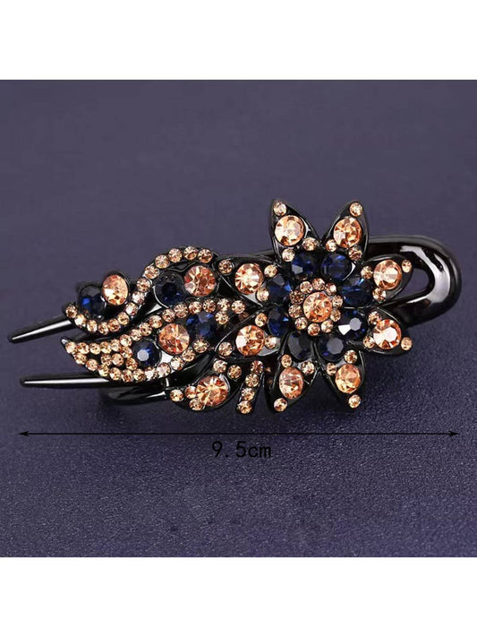 Metal Hair Clip w. Flowers & Crystal Beads