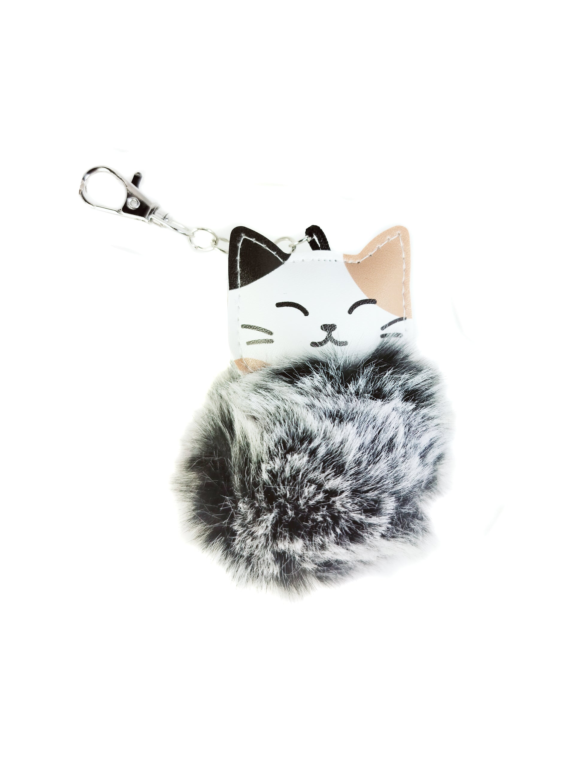 Flot gylden nøglering med sød grå kat og blød pom pom.