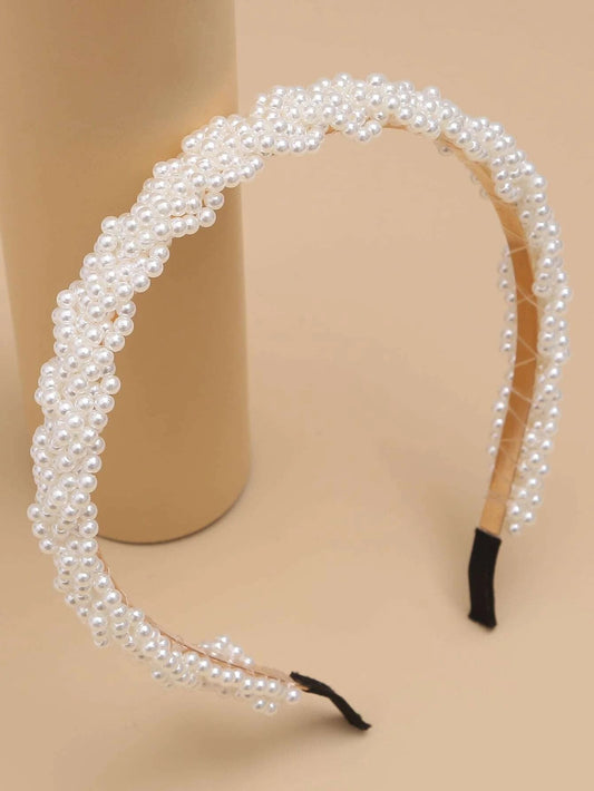 Hårbøjle med Hvide Perler i Snoet Design